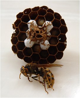 ![]() すずめ蜂の巣と幼虫と女王様の死体 |