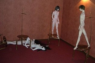 まるで空中遊泳をしているような人形3体と なだれ込む2体