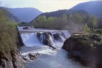 ここは何度も清流日本一に輝いたピョウタンの滝っていうんだ。すご〜く広くって北海道ってかんじ!
