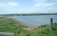 長節湖こは、豊頃町大津市街から南西4kmにある周囲5kmの鹹水(かんすい)湖で、太平洋と幅の狭い砂丘で隔てられています。湖の砂丘一帯の植物群は、北海道の天然記念物にも指定されており、春から初夏にかけてハマナス、エゾカンゾウ、ムシャリンドウ、センダイハギなどの美しい花が次から次へと咲き競います。また湖畔にはキャンプ場(バンガロー、炊事場、トイレ、駐車場、売店等)が整備されており、毎年7月下旬から8月中旬は、大勢の観光客で賑わいます。